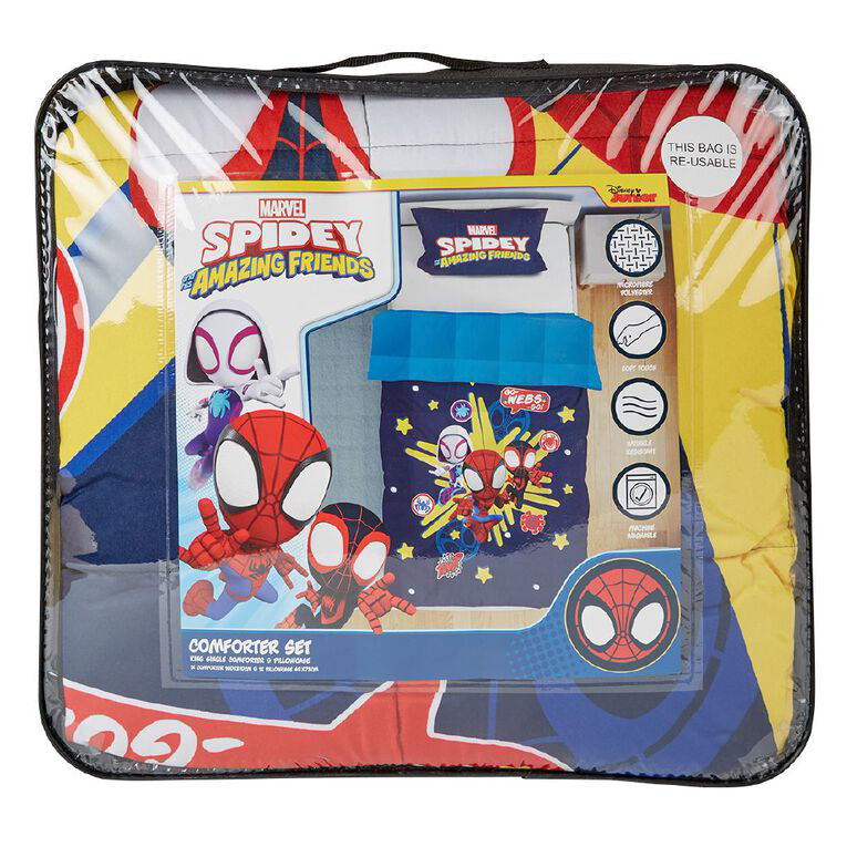 Spidey and His Amazing Friends manchester range designed for The Warehouse Group. Target audience - 3-7 year olds. Instore 2022-2023.