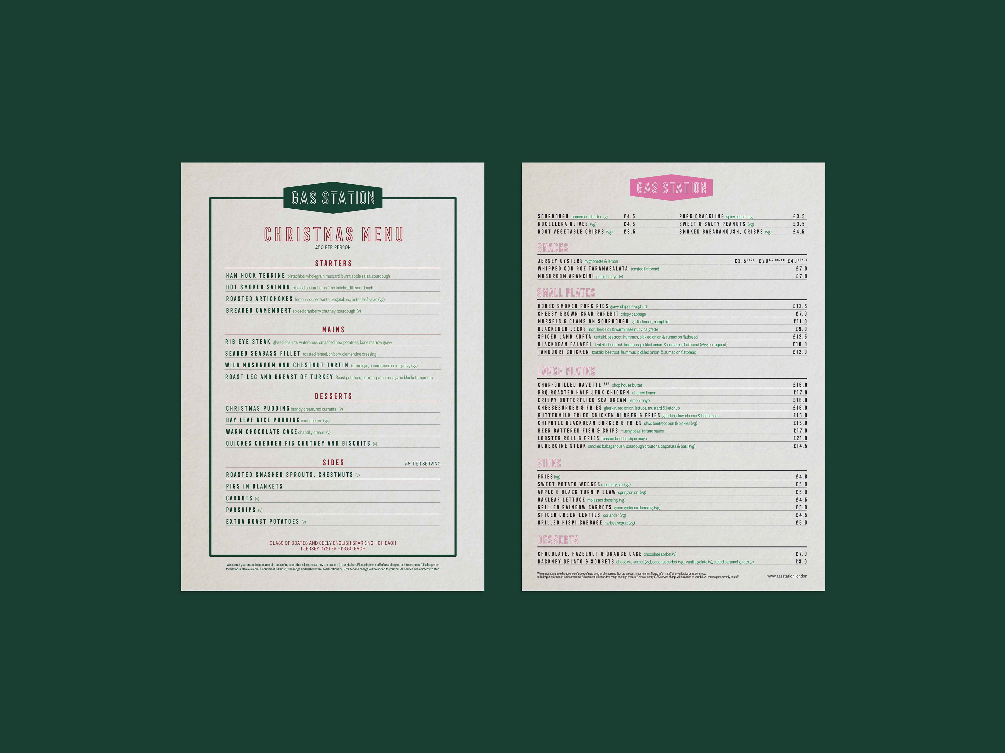 Seasonal menu designs for The Gas Station - Kings Cross, a large indoor outdoor venue overlooking Regents canal.